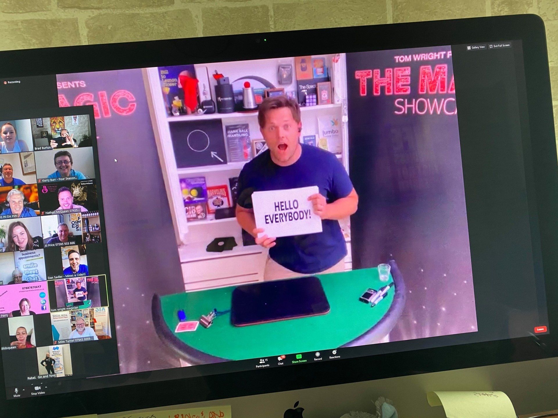 Tom's zoom magic show is like no other! It will stimulate all your clients brains, it will wake them up and recharge their imaginations!